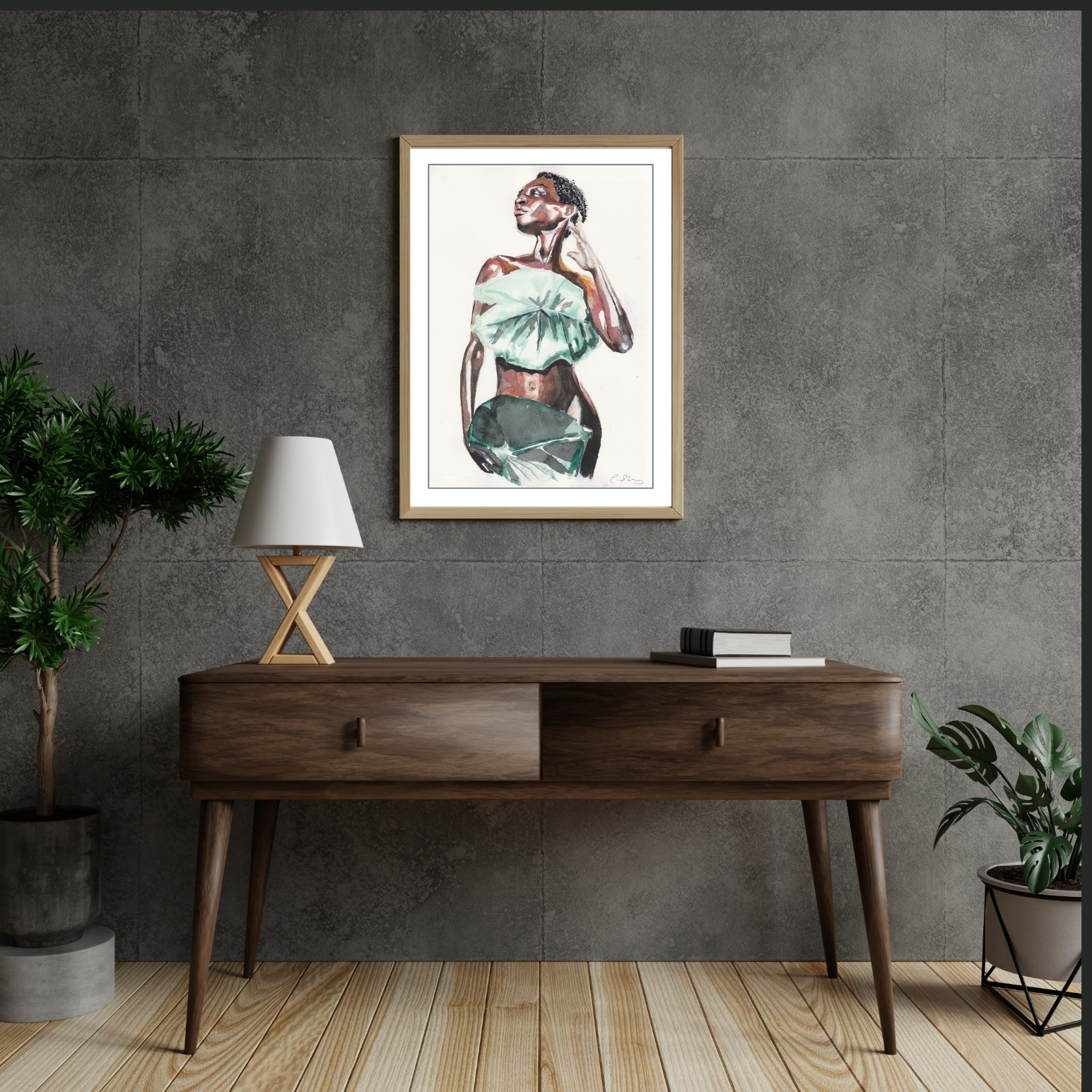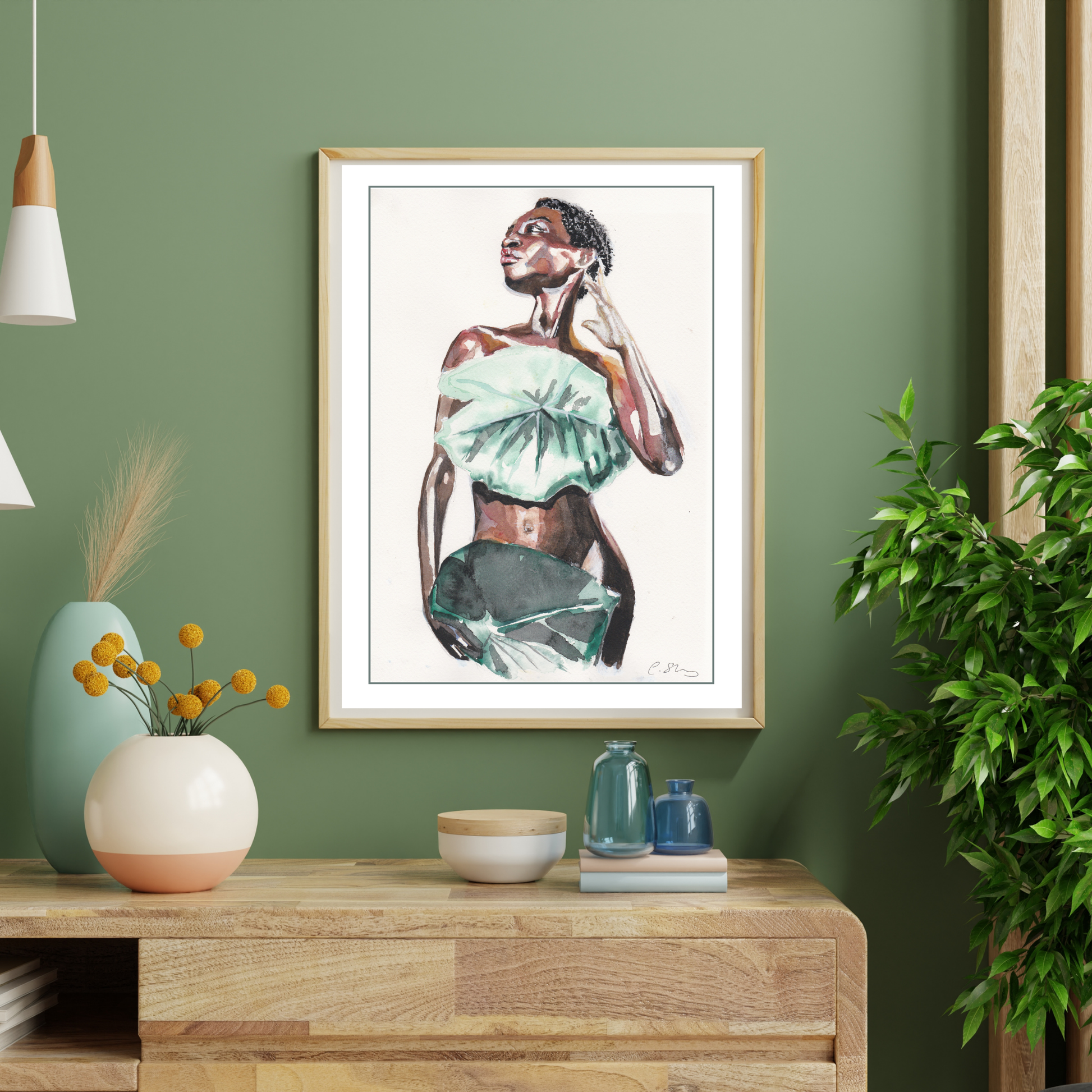 "Emerald Grace" Watercolour and pastel painting printed onto 100% Cotton matte velvet finish 310gsm Hahnemühle German Etching paper.